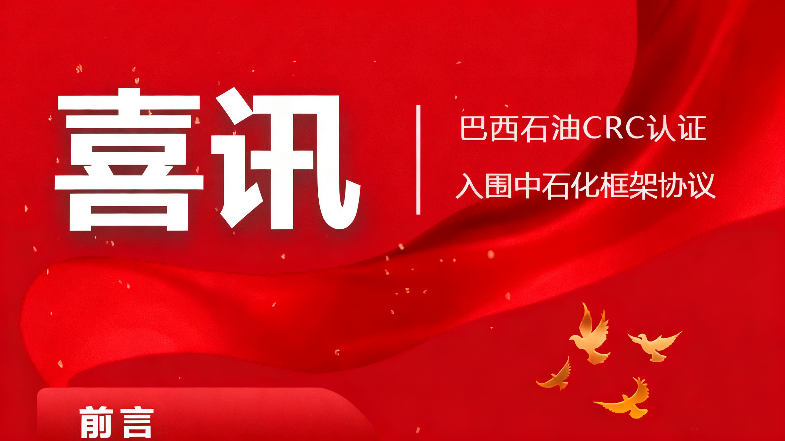 威海化工機(jī)械有限公司近日接連斬獲國(guó)際國(guó)內(nèi)兩大高端市場(chǎng)入場(chǎng)券:成功通過巴西CRC認(rèn)證,正式進(jìn)入巴西石油供應(yīng)商體系;同時(shí)入圍…